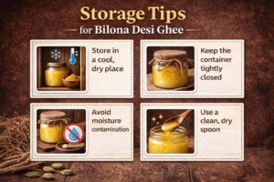 Proper storage helps maintain the quality and freshness of bilona desi ghee.